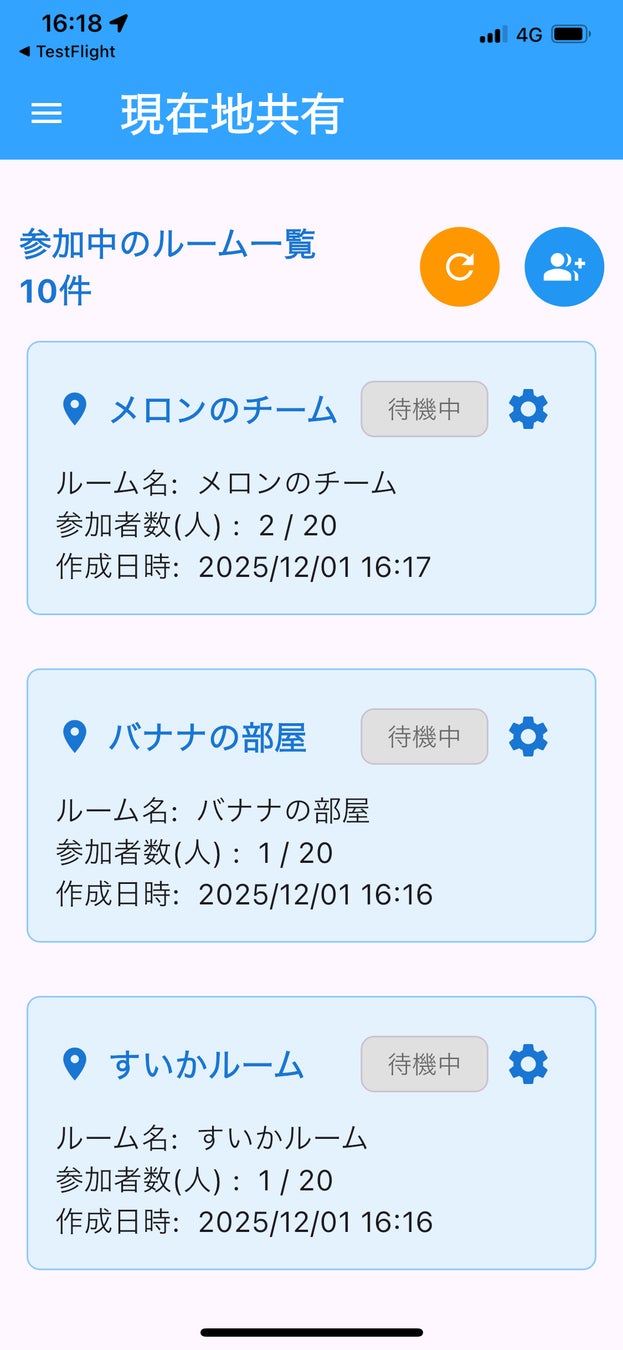 ・位置情報の共有は、招待制の「ルーム」内のみ。位置情報の共有オンオフは、