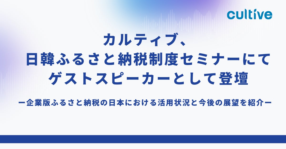 企業版ふるさと納税を活用した地域課題解決プラットフォーム「river(リバー)」を運営する株式会社カルティブ(本社:神奈川県横浜市、代表取締役:池田 清、以下「当社」)は、2025年4月23日に宮崎県と韓国行政安全部が共同で開催した「日韓ふるさと納税制度の活性化のための政策セミナー」において、当社代表の池田清がゲストスピーカーとして登壇いたしましたことをお知らせいたします。