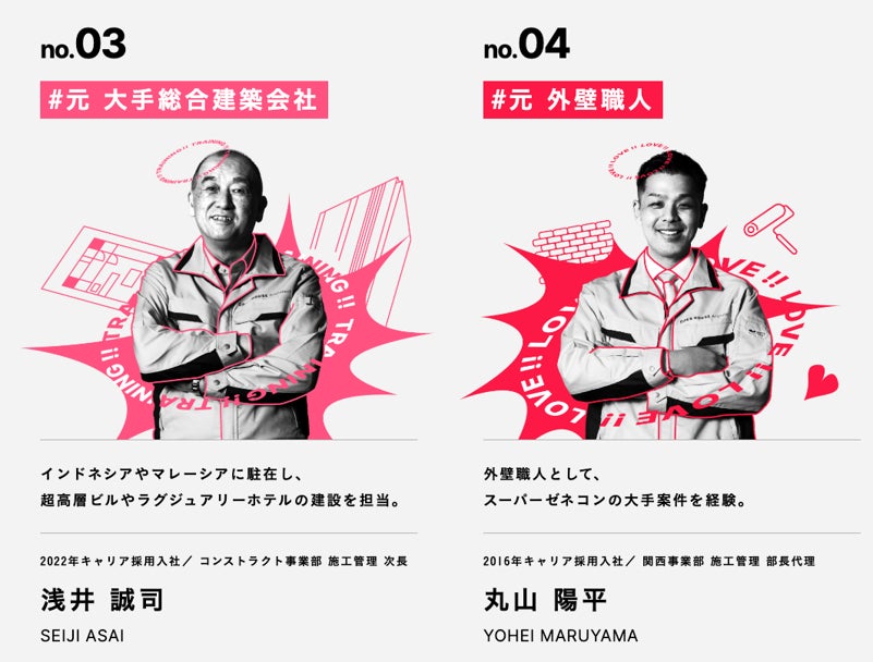 文系出身の方、理系出身の方、未経験の方、経験者の方、若手もベテランも関係なく、誰もが活躍できる組織づくりで、業界No.1の建築会社を目指しています。業界や経験の壁を「越境」して、No.1を目指す人に出会いたいと考えています。