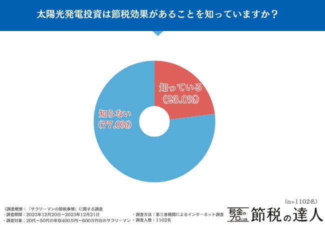 太陽光発電投資に節税効果があることをどれくらいの方が知っているか、「太陽光発電投資は節税効果があることを知っていますか?」と聞いてみました。