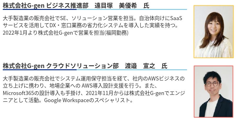 株式会社G-gen(本社:東京都新宿区、代表取締役:羽柴孝)は、福岡商工会議所が主催するセミナー「Google Workspaceで踏み出す働き方改革〜コラボレーションツールとしてGoogle Workspaceを選択する理由〜」に登壇いたします。