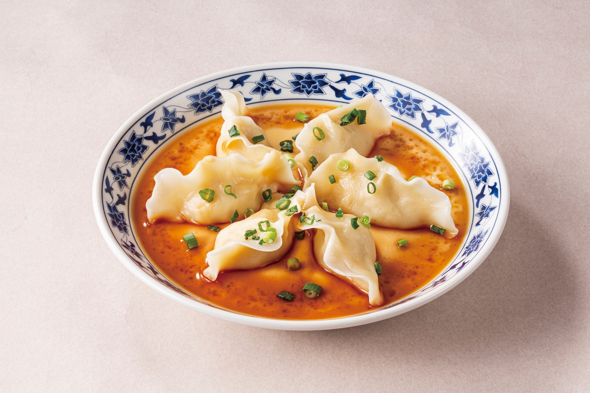 痺れる山椒が効いた麻婆豆腐を包みました。もっちりとした皮を噛んだ瞬間、じゅわっと広がる熱々の辛味と、中華出汁の蒸し玉子とのコラボレーションをお楽しみください。