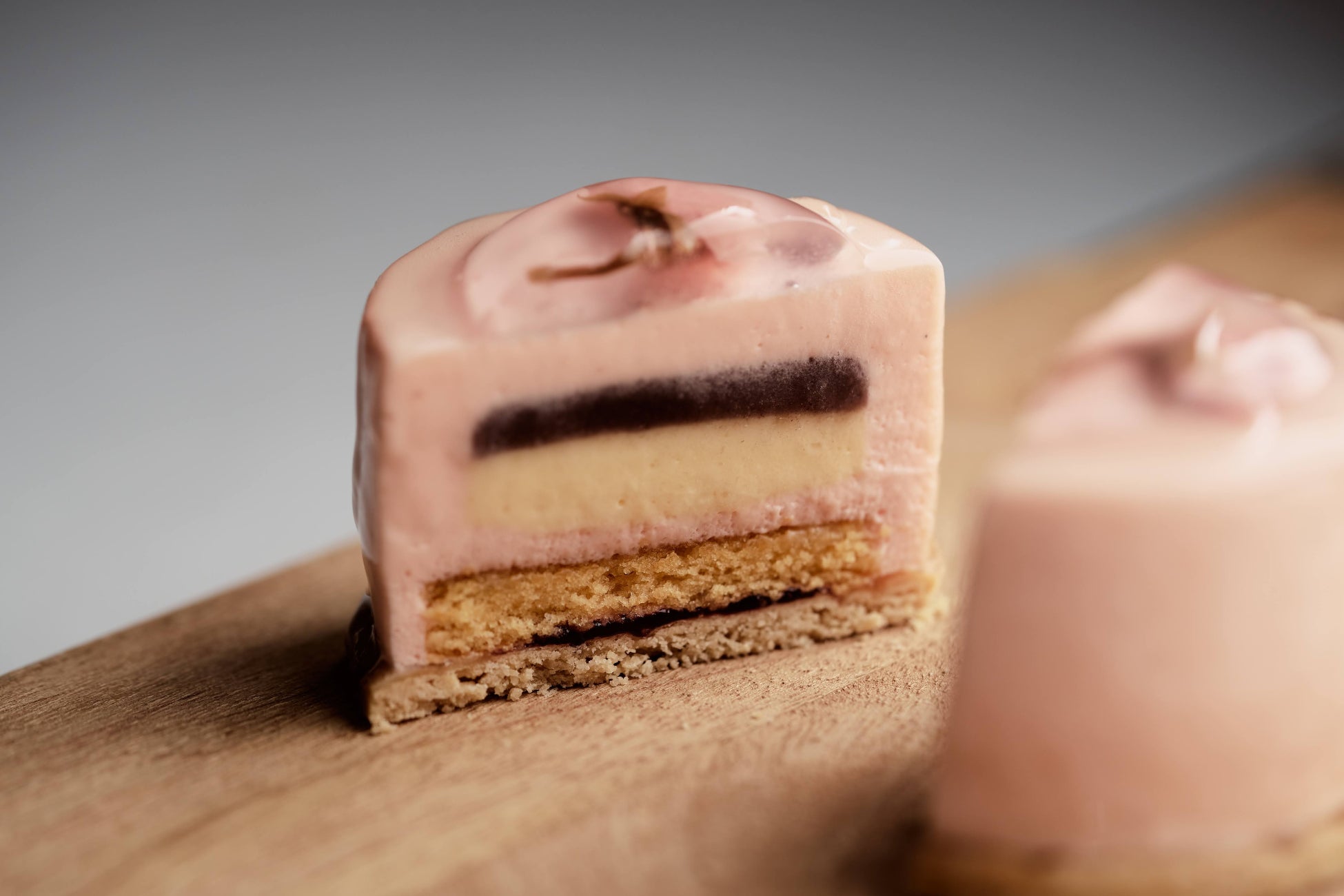 発酵小豆のやさしい甘さがさくらの香りや味わいを引き立て、土台のシュクレやパンドジェンヌが食感を加えます。さくらが咲いている時期にしか味わえない春の特別なケーキ。