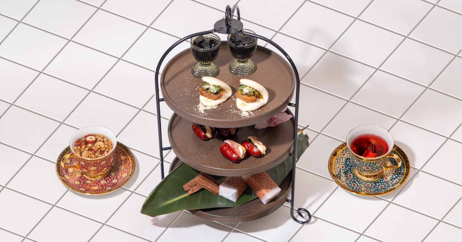 ナツメバターサンドや仙草ゼリー、ヴィーガンミニBAOなどヘルシーな台湾オリジナルメニューを厳選。オリエンタルなティーカップでお好きな和漢ブレンドティーとともにゆったり特別なご自愛時間を。