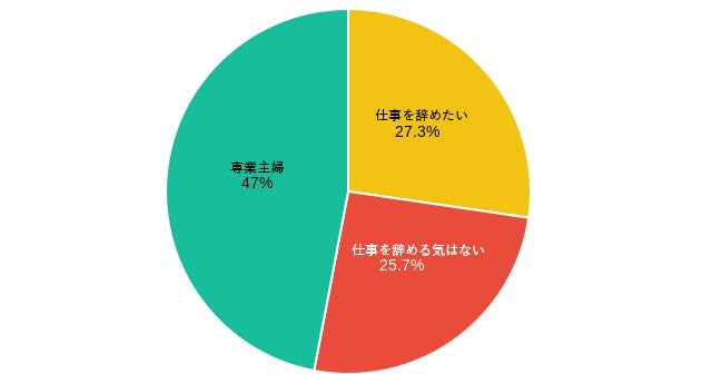 「仕事を辞めたい 27.3%(82人)」「仕事を辞める気はない 25.7%(77人)」「専業主婦 47.0%(141人)」となっております。