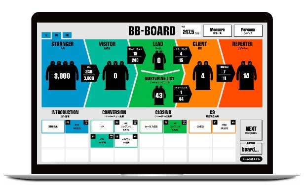 『BB-BOARD』では、受講者がBtoBビジネスの事業責任者になって、マーケティングの全体設計に取り組みます。