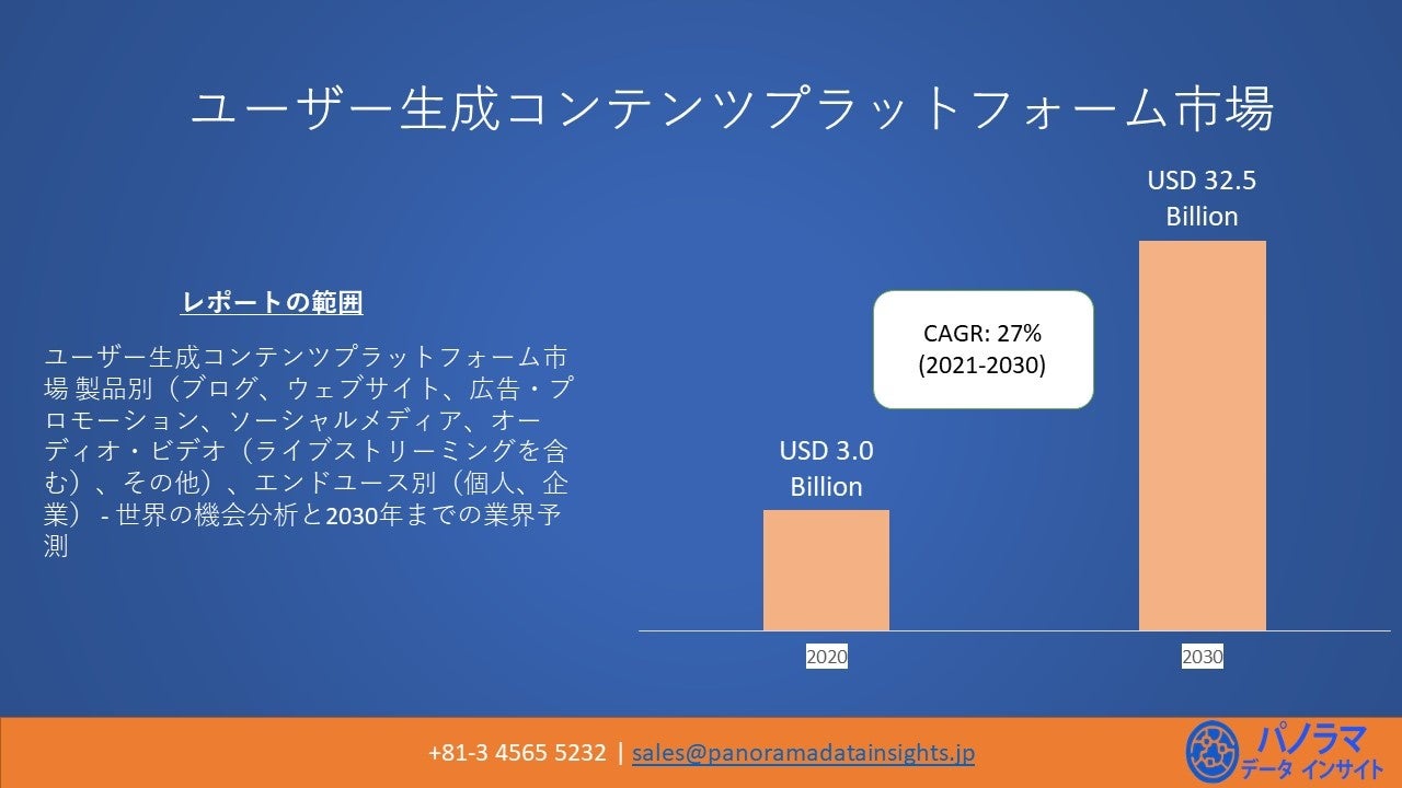 グローバルユーザー生成コンテンツプラットフォーム市場の世界市場は2030年に325億米ドルに達すると予想|年平均成長率(CAGR): 27%