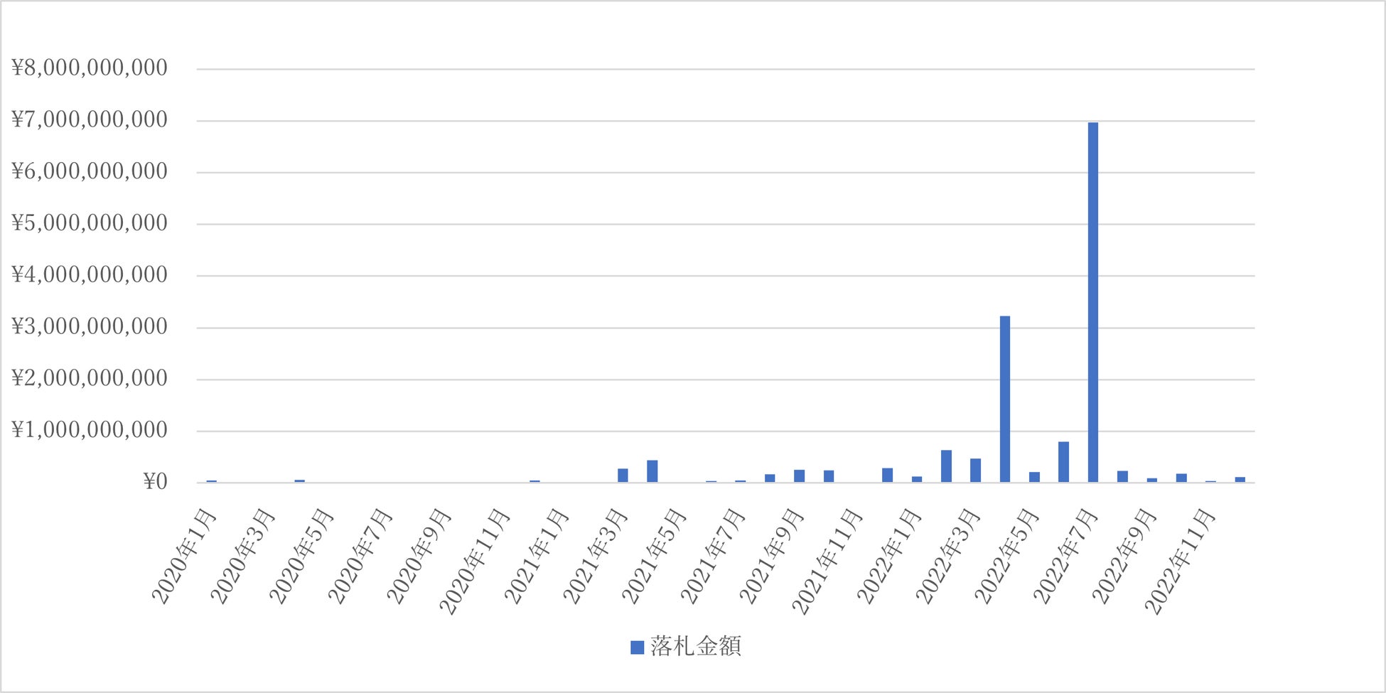 図7 2020年から2022年までの「カーボンニュートラル」月別落札金額推移