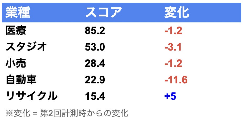 今回、第2回からの変化が大きかったのが、自動車関連業界でした。各店舗ごとに、変動の理由はそれぞれに存在しているため具体的な言及は難しいですが、低評価が入る際には全体的に以下の傾向が見られました。