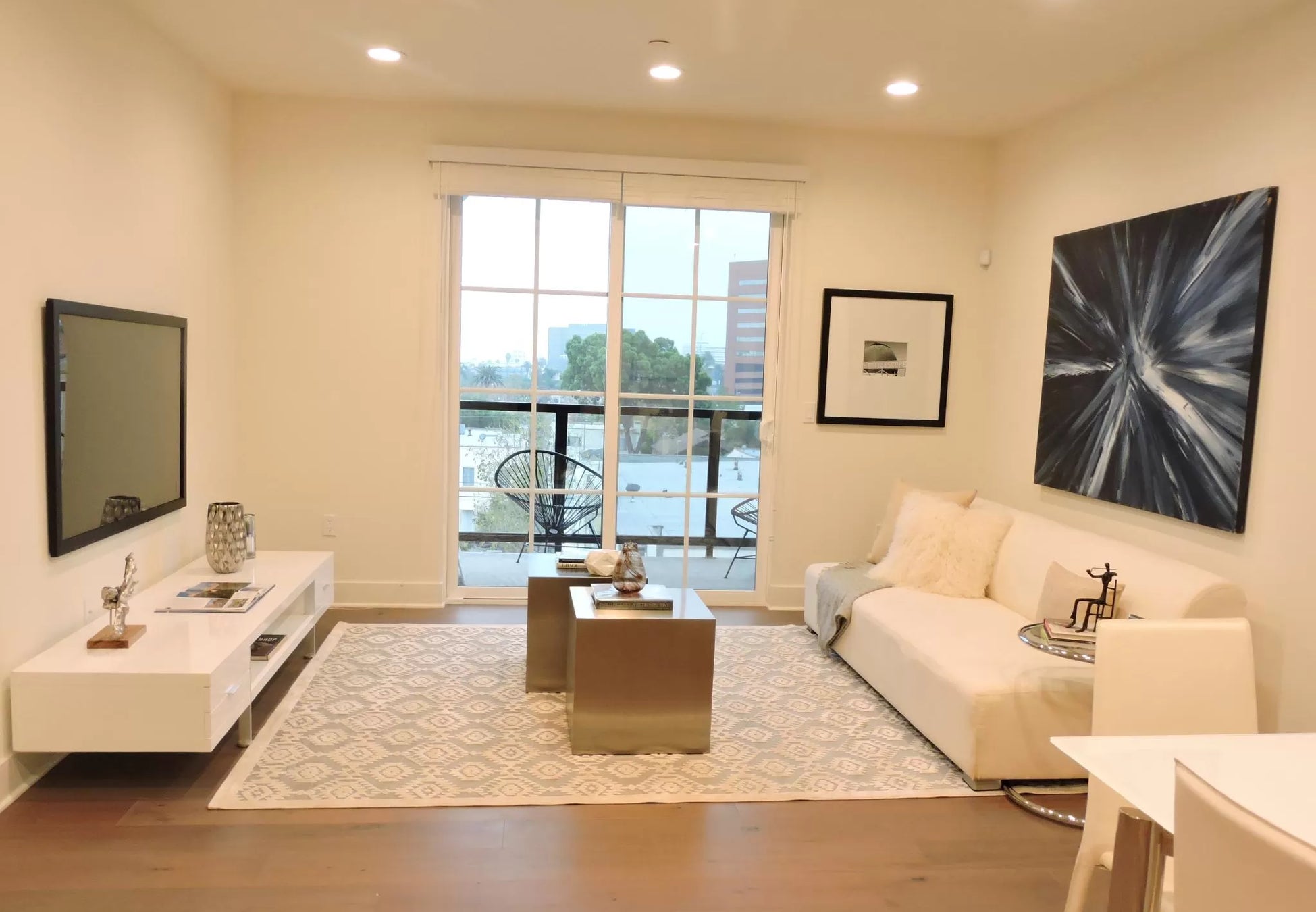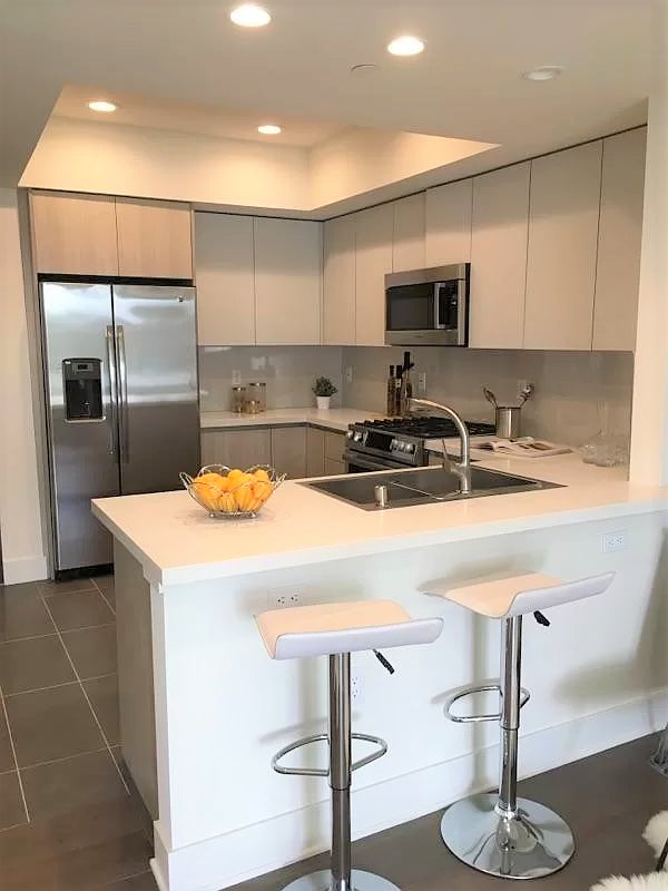 新築のため、リビングやキッチン、バスルームなどはとても綺麗で清潔感があるとともに、アメリカでは大変珍しく、バスタブつきのバスルームを各部屋に備えています。洗濯乾燥機やエアコン、バルコニー、テレビ、Wifiなども完備しているので、長期の滞在も快適に過ごすことができます。