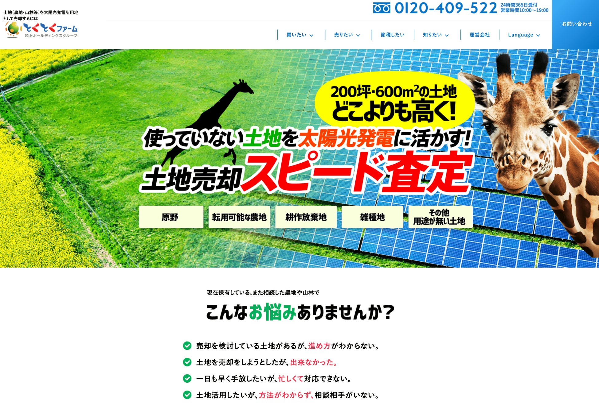 和上ホールディングスが運営する「とくとくファーム」では、使っていない土地や農地・山林などの買取を行っています。