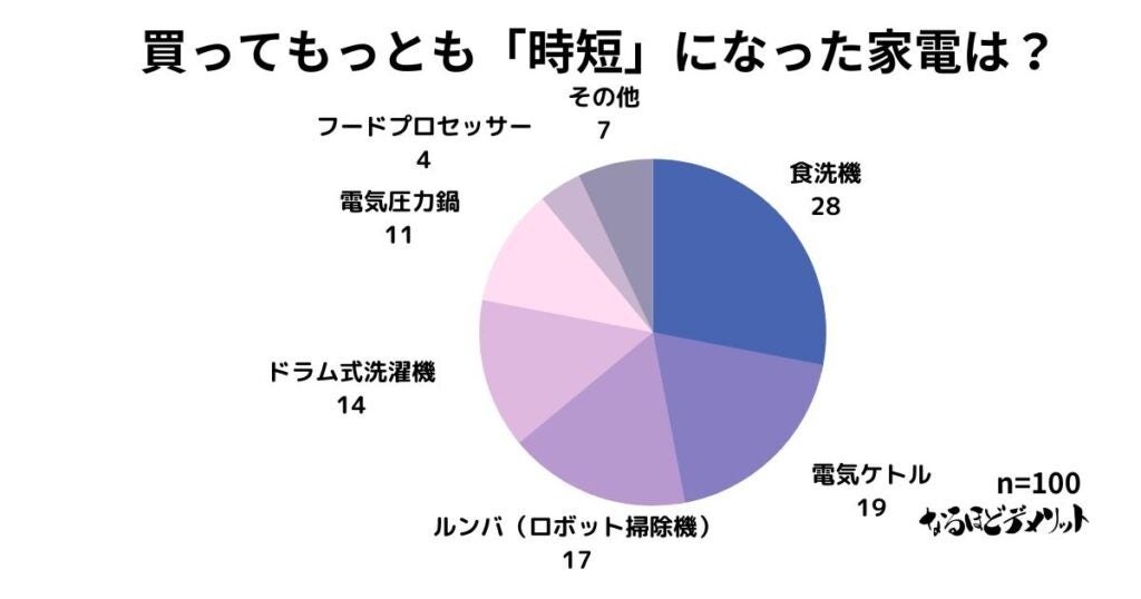株式会社ACILが運営するモノやサービスのデメリットに関する情報メディア『なるほどデメリット』(https://demerits.jp/)は、全国の男女100人を対象に「買ってもっとも「時短」になった家電は?」をテーマとしたアンケート調査を実施致しました。