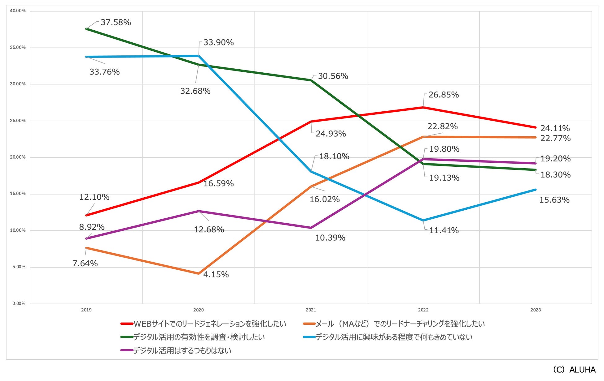 BtoB企業向けにマーケティングや営業戦略のコンサルティングサービスを展開する株式会社ALUHA(本社:石川県金沢市、代表:荻野 永策)は、BtoB企業のマーケティングや営業戦略におけるデジタル活用の意識変化について調査しました。