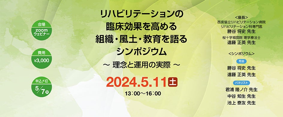 【オンライン】リハビリテーションの臨床効果を高める組織・風土・教育を語るシンポジウム~理念と運用の実際~ 5月11日に開催。