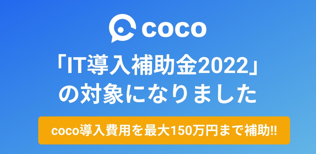 「顧客志向を当たり前に」をミッションに掲げ、店舗向けに現場接客DX SaaS「coco」を提供する株式会社coco(本社: 東京都渋谷区、代表取締役社長: 高橋俊介、以下 coco)は、経済産業省が推進する「IT導入補助金2022」において、IT導入支援事業者に採択されたことをお知らせします。中小企業・小規模事業者等が「coco」の導入を行う際、経費の一部(最大150万円)の補助を受けることが可能となります。