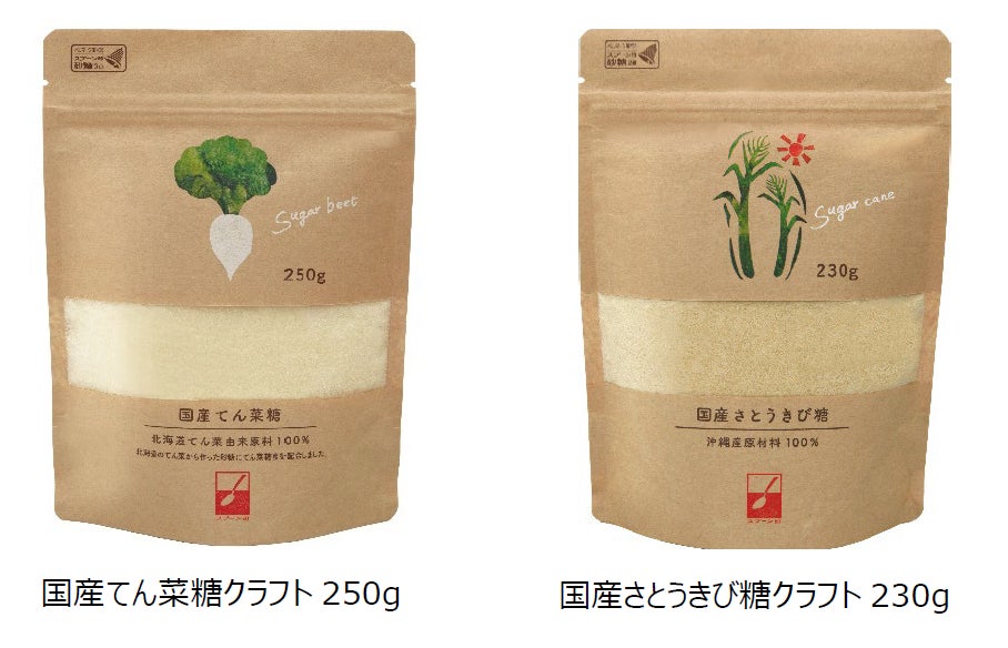 環境にやさしいクラフト袋入り国産ブラウンシュガー発売・人気通販サイトで特集「国産てん菜糖クラフト」「国産さとうきび糖クラフト」