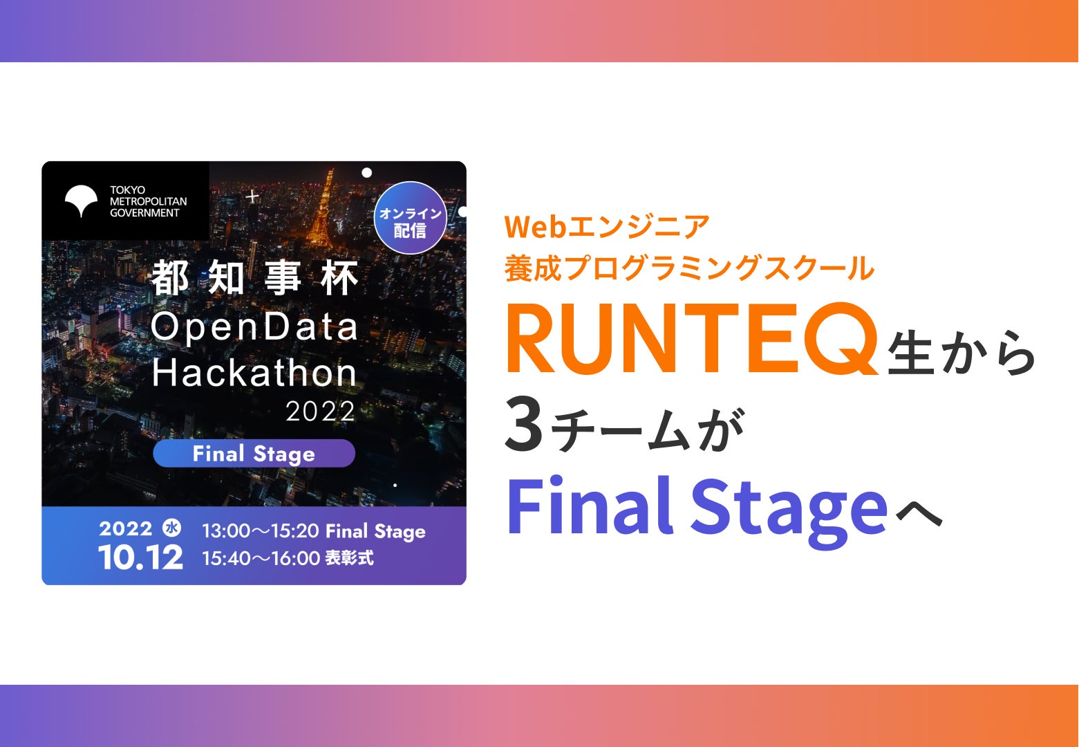 都知事杯オープンデータ・ハッカソン2022にてWebエンジニア養成スクールRUNTEQ(ランテック)より3チームが優秀作品に選出&Final Stage進出