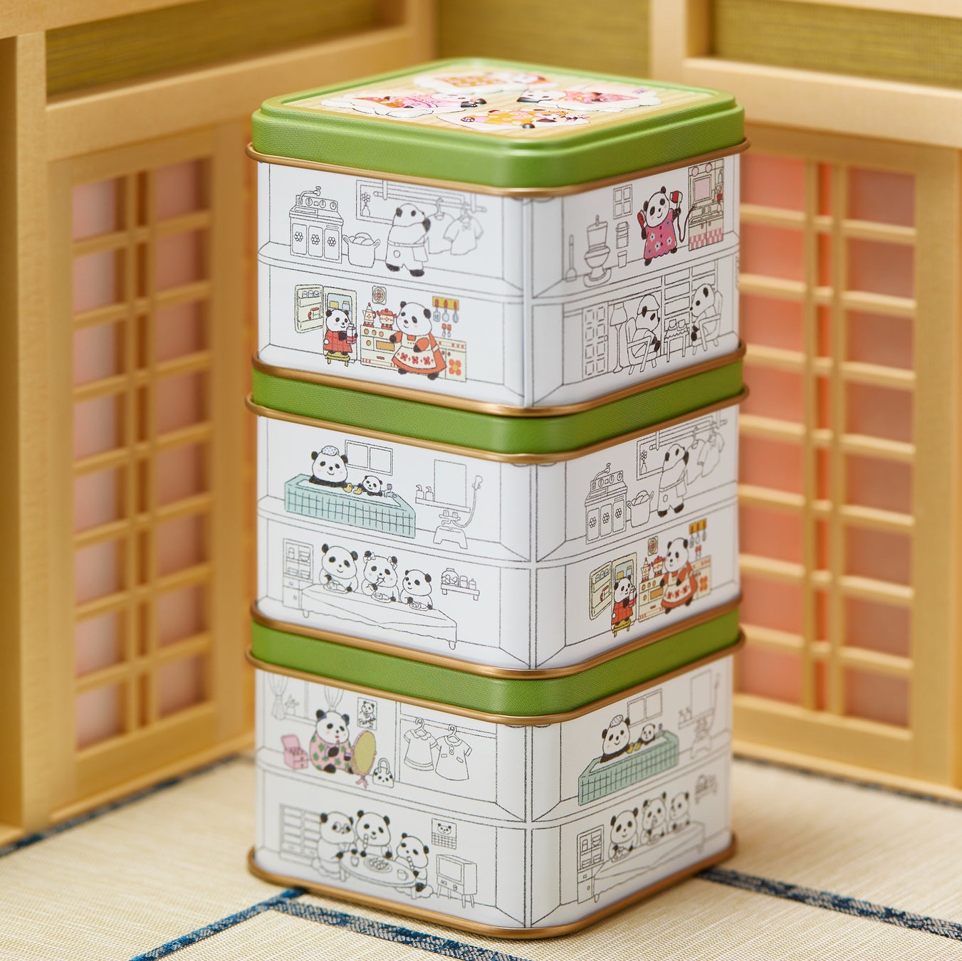 心あたたまるレトロで可愛い『パンダのお家』を描いたお菓子缶。