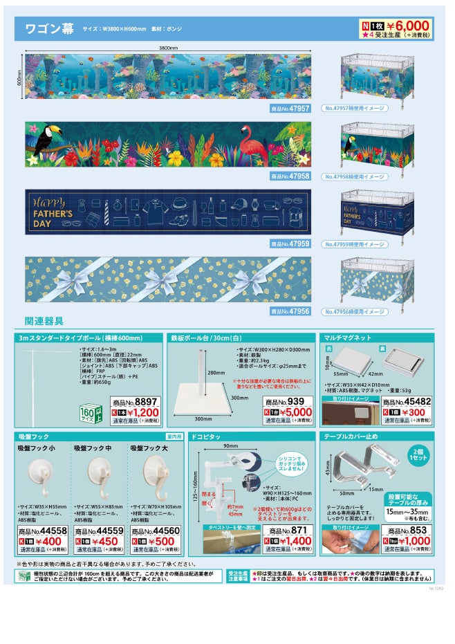 夏の販促に欠かせないこれらのアイテムを活用して、売り場を明るく魅力的に演出しましょう!ご注文お待ちしております。