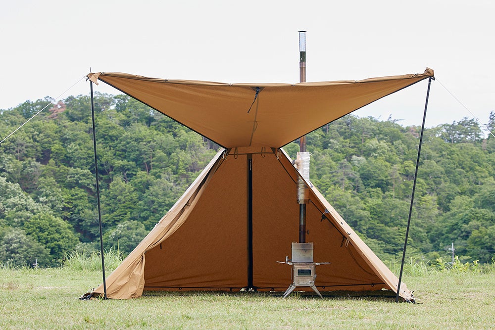 SOLO DXではフライシート側面に煙突穴を設けることでこれまでよりもかんたんに薪ストーブを設置することが可能になりました。