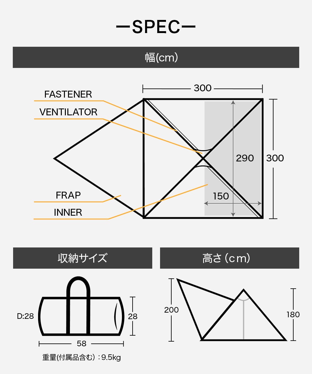 サイズ:300 x 300 x 160 (cm)
