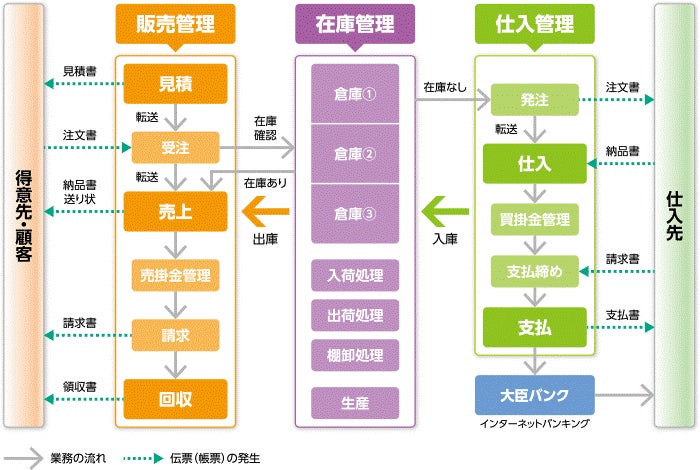 Marian EXは、販売大臣NX ERPと連携する、マーズコンピュータ株式会社提供の生産ソリューションです。生産活動に必要な機能だけをパッケージ化し、ERP(統合基幹業務システム)連動にてマスタ・在庫の共通化、リアルタイムな受発注連携、発注・仕入連携、製造完成連携が可能。販売大臣NX ERPとのシームレスな連携で、ワンストップでの販売管理業務と生産管理業務を実現します。