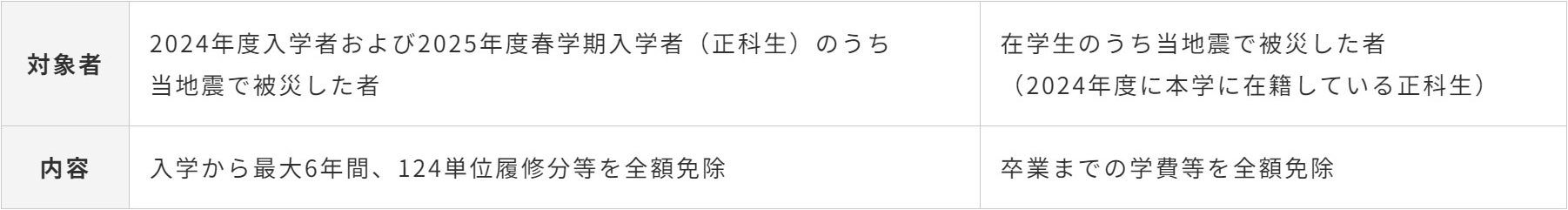 ●令和6年能登半島地震で被災した入学者、在学生を対象に特別奨学金制度を導入