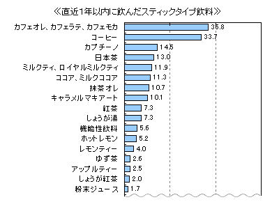 マイボイスコム株式会社(東京都千代田区、代表取締役社長:高井和久)は、『スティックタイプ飲料』に関してインターネット調査を実施し、2013年10月1日~5日に11,426件の回答を集めました。調査結果をお知らせします。
