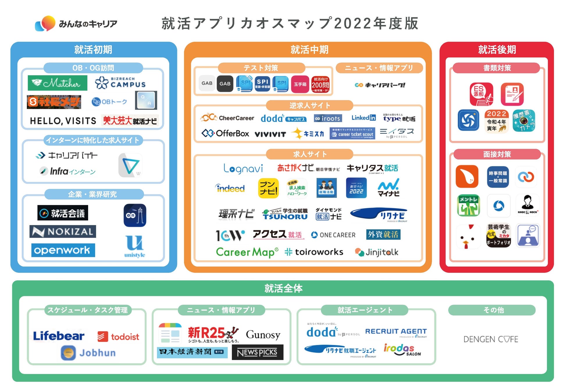 株式会社エージェントが運営する口コミ情報サイト『みんなのキャリア』が「就活アプリカオスマップ 2022年版」を公開