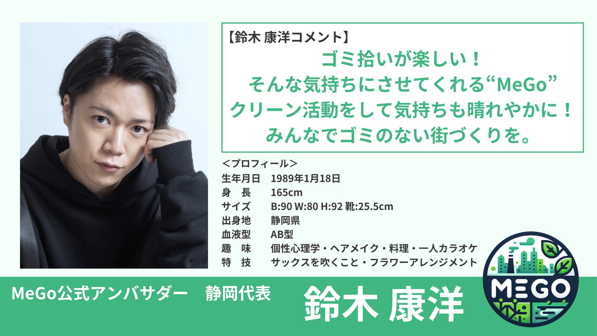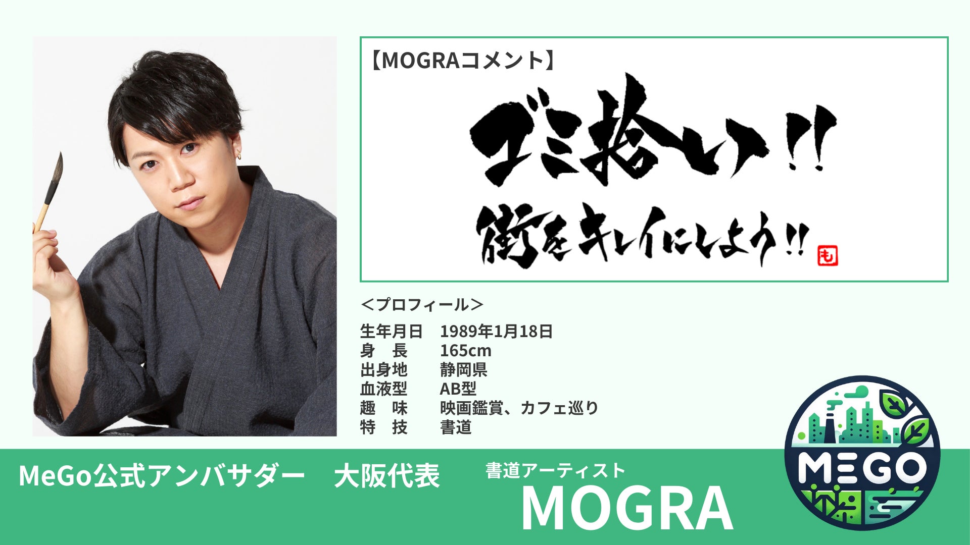 このたびMOGRAの活動拠点である大阪、鈴木康洋の出身地である静岡のクリーン活動を盛り上げるべく、新しい社会課題解決サービス「MeGo」(ミーゴー)の公式アンバサダーに就任いたしました。