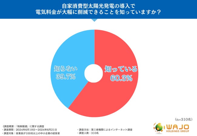 そこで今回、中小企業向けの自家消費型太陽光の税制優遇のサポート(https://wajo-holdings.jp/plants/lp-tax/) を行っている株式会社和上ホールディングスは、中小企業の経営者を対象に「税制優遇」に関する調査を実施しました。
