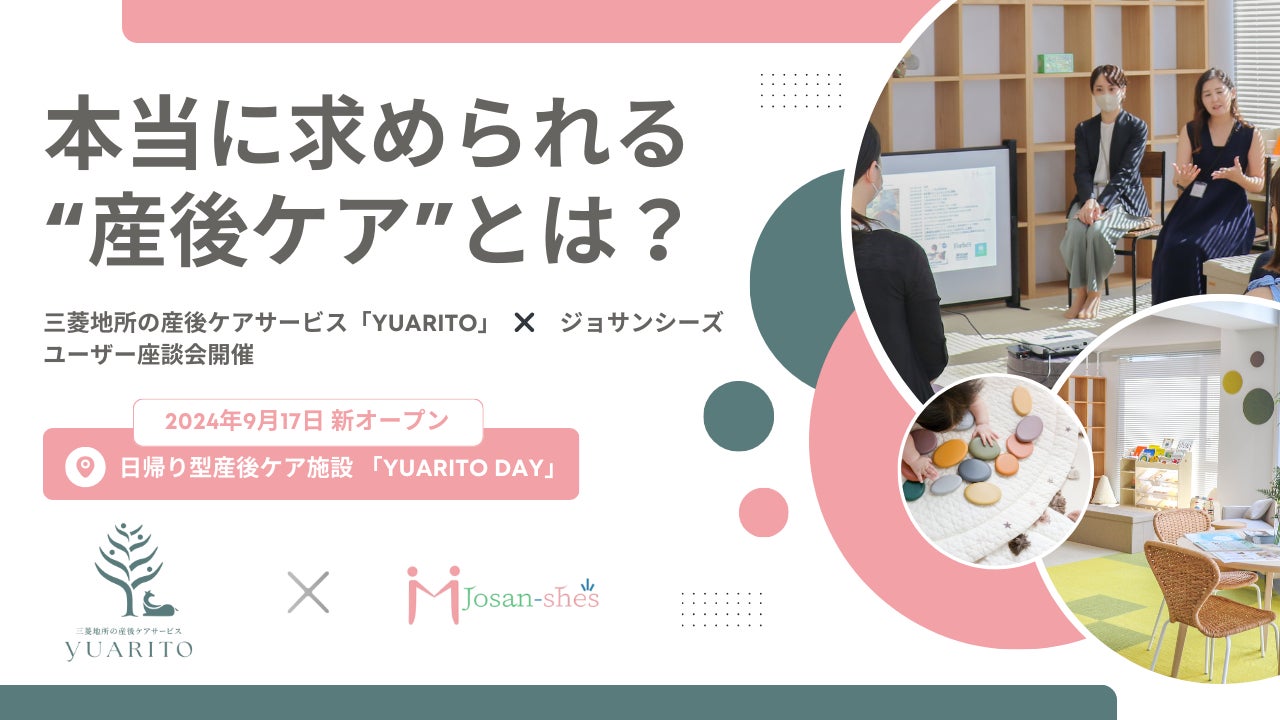 株式会社Josan-she's(本社:東京都中央区、代表取締役CEO:渡邊愛子、以下「ジョサンシーズ」)は、三菱地所が9月17日に開業した日帰り型産後ケア施設「YUARITO DAY 日本橋浜町」と協業を開始いたしました。「YUARITO DAY 日本橋浜町」は、産後ケアに新たな選択肢を提供する施設として誕生し、開業を記念して座談会&見学会を開催しました。本イベントでは、"本当に求められる産後ケア"をテーマに、実際に産後ケアを利用したママたちが集まり、体験談や意見を共有しました。