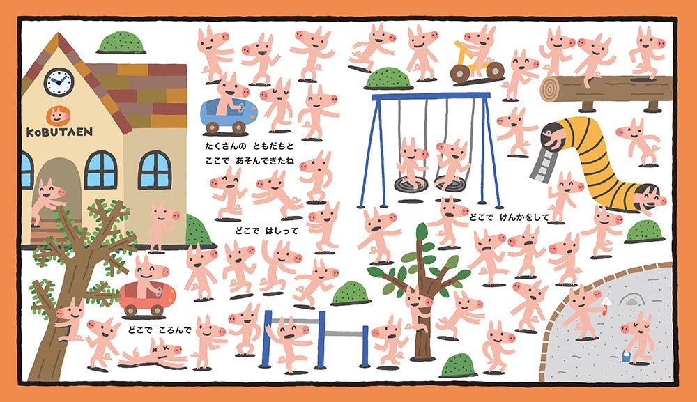 個性豊かなこぶた君がたくさん登場する、にぎやかで楽しい1冊。なかには、友だちに似たこぶた君や、もしかしたら自分に似たこぶた君もいるかも……?