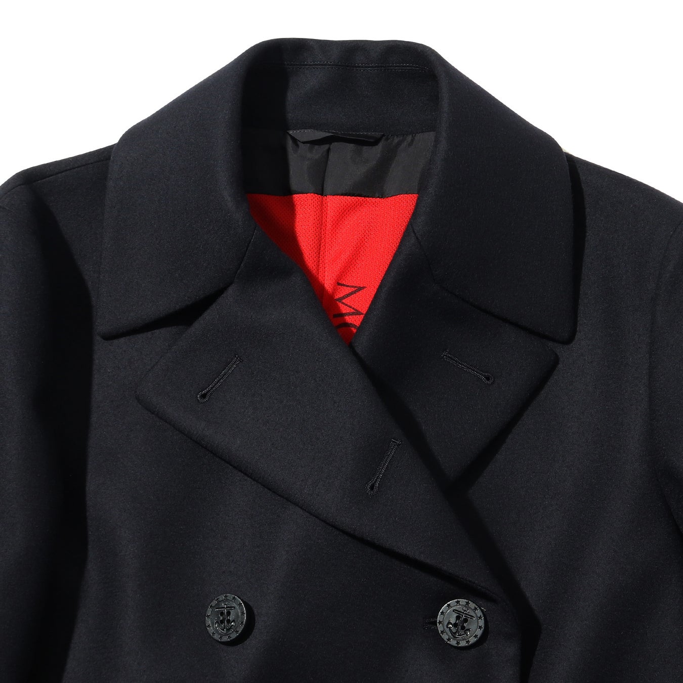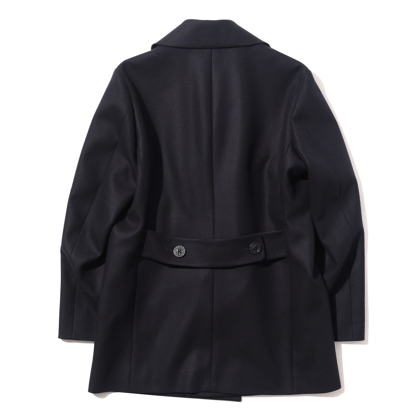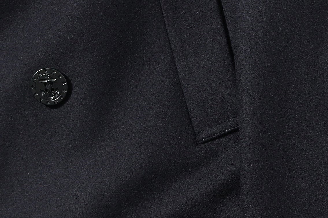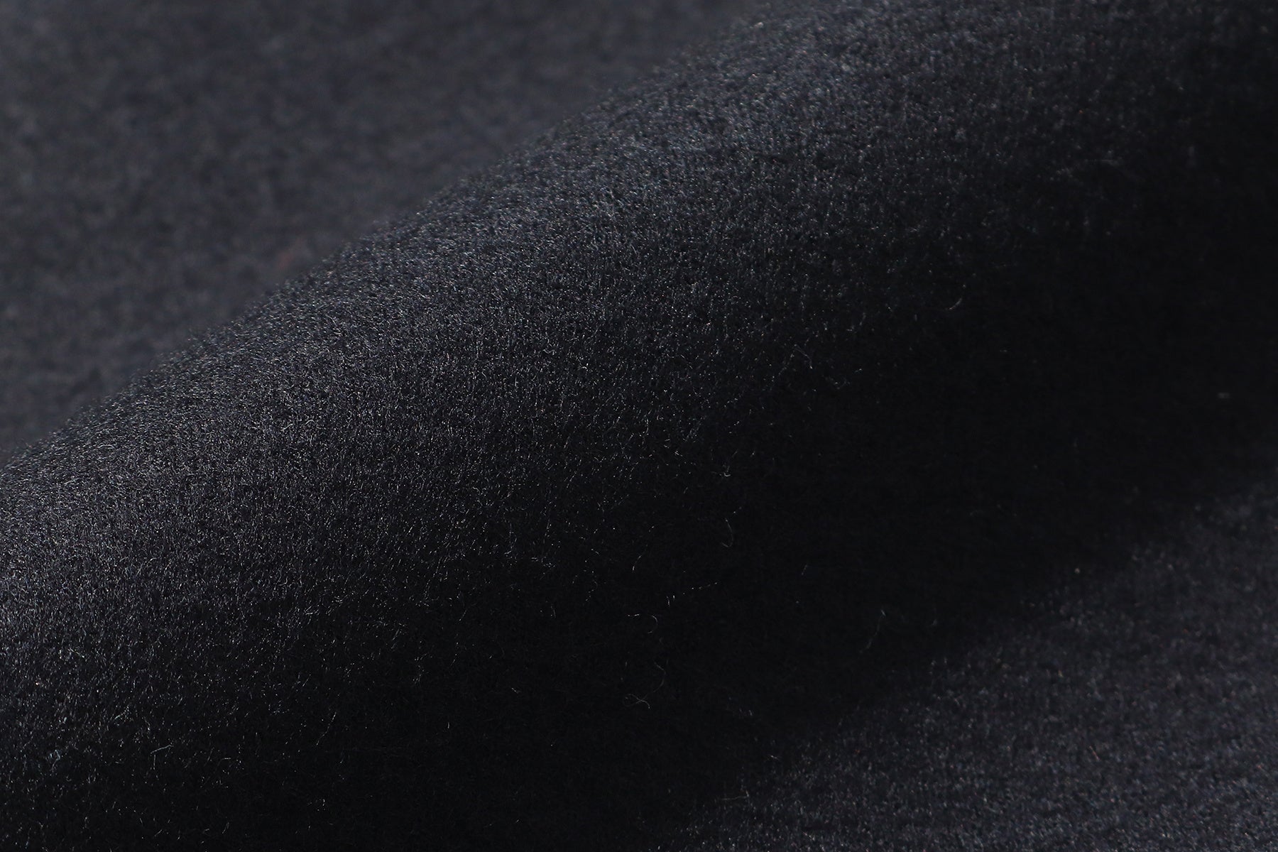 加えて、襟やフロントからステッチを排除。ステッチをなくすことで生地がフラットになり、より一層美しい光沢を放ちます。希少性の高いウールの膨らみ感も感じられるモードな雰囲気のPコートが完成しました。