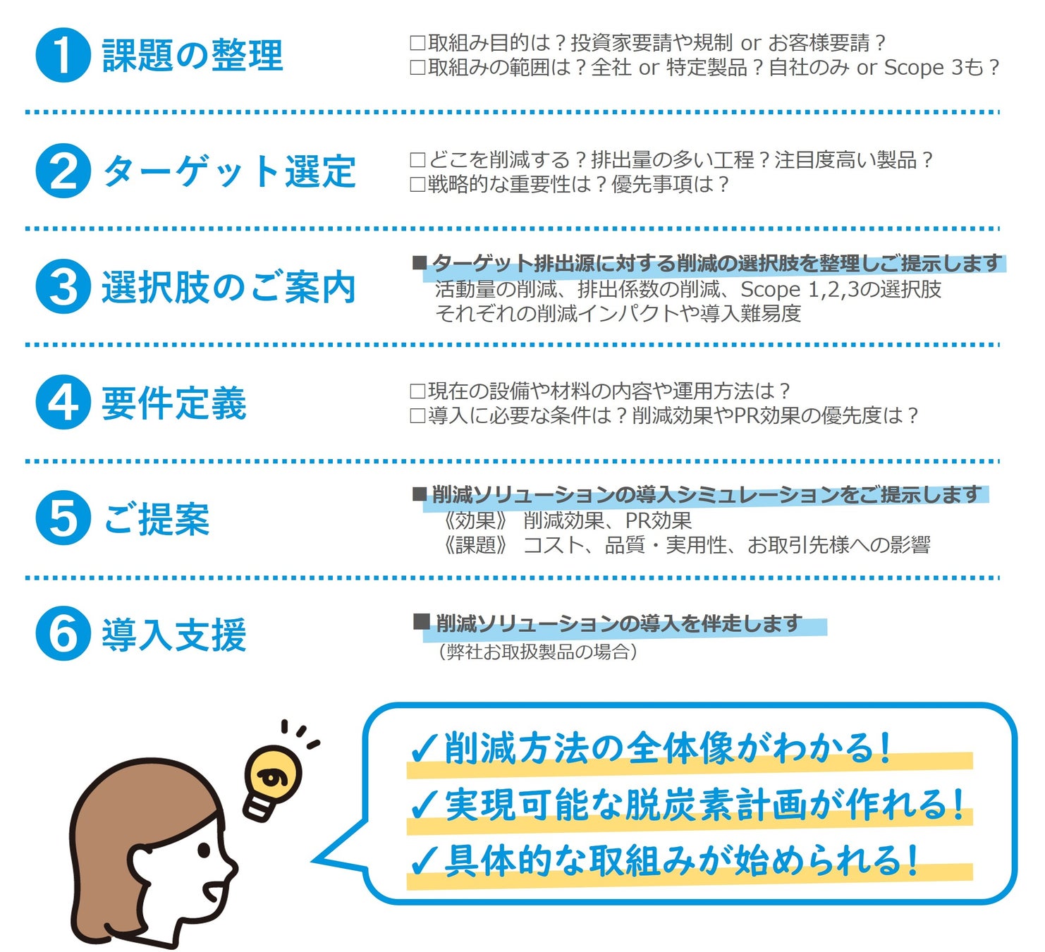兼松では、サプライチェーンを繋ぐ商社として培ってきた様々な現場でのソリューション提案の知見を活かし、このようなお悩み解決に貢献します。業務提携(※)しているアスエネとともに、「課題の整理」から「削減ソリューションの導入」まで幅広く支援いたします。是非兼松ブースまでお越しください。