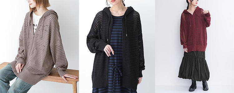 程よい穴あきの透け感で、レイヤードスタイルを格上げしてくれるトレンド感溢れるメッシュ編みパーカーです。