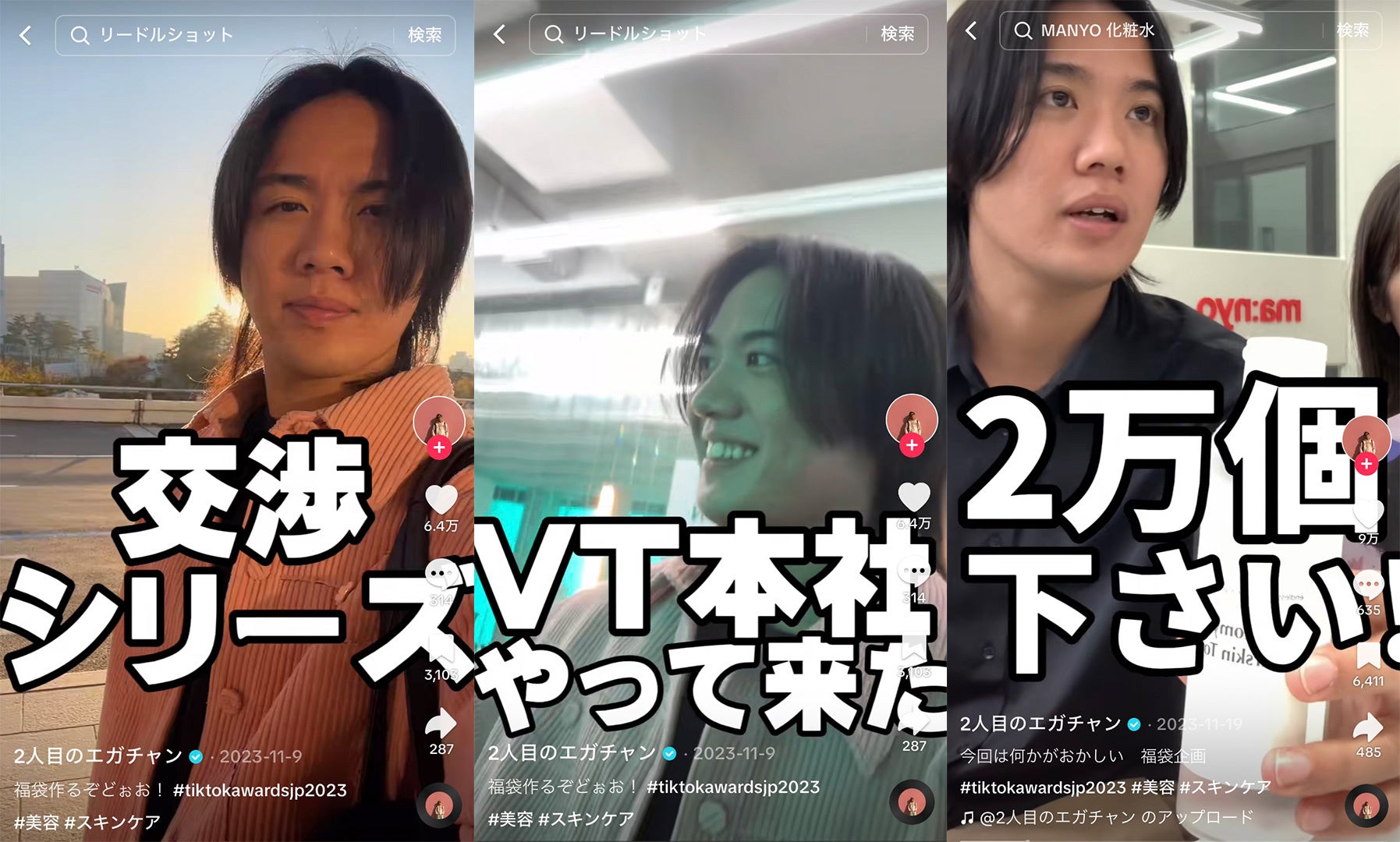 結果として、多くの投票を集め、TikTok Creator Awards Japanで「Beauty Creator of the Year」を受賞。2人目のエガちゃんが様々なブランドへ直接交渉し集めた選りすぐりの商品を「毛穴用福袋」「ニキビ用福袋」として販売。