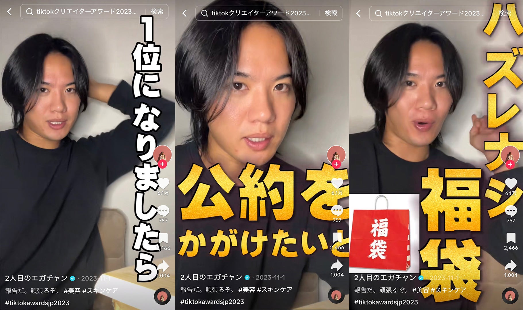 TikTok Creator Awards Japan 2023にノミネートされた「2人目のエガちゃん」が、受賞を条件にファンへの特別な福袋を提供するという視聴者参加型の企画。