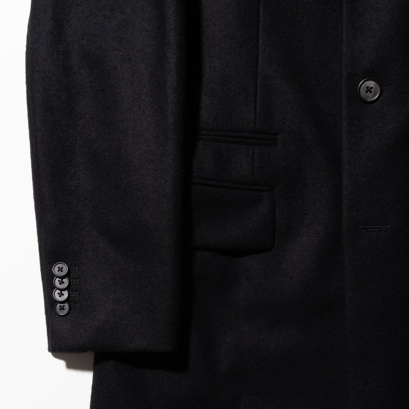 - 限定アイテム①:「カシミヤ×Super 140's」。ラグジュアリー感溢れるチェスターコート