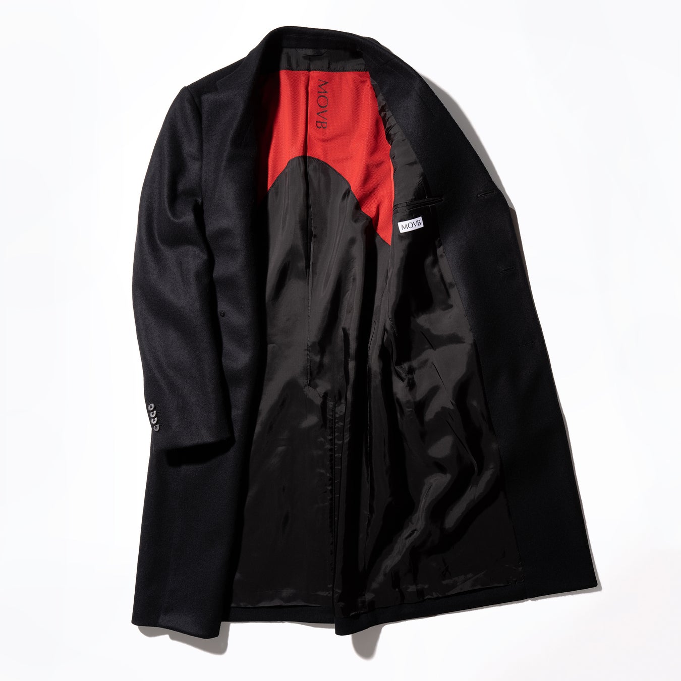 MOVB初となる「カシミヤ」を30%ブレンドた原毛を使用したチェスターコート。