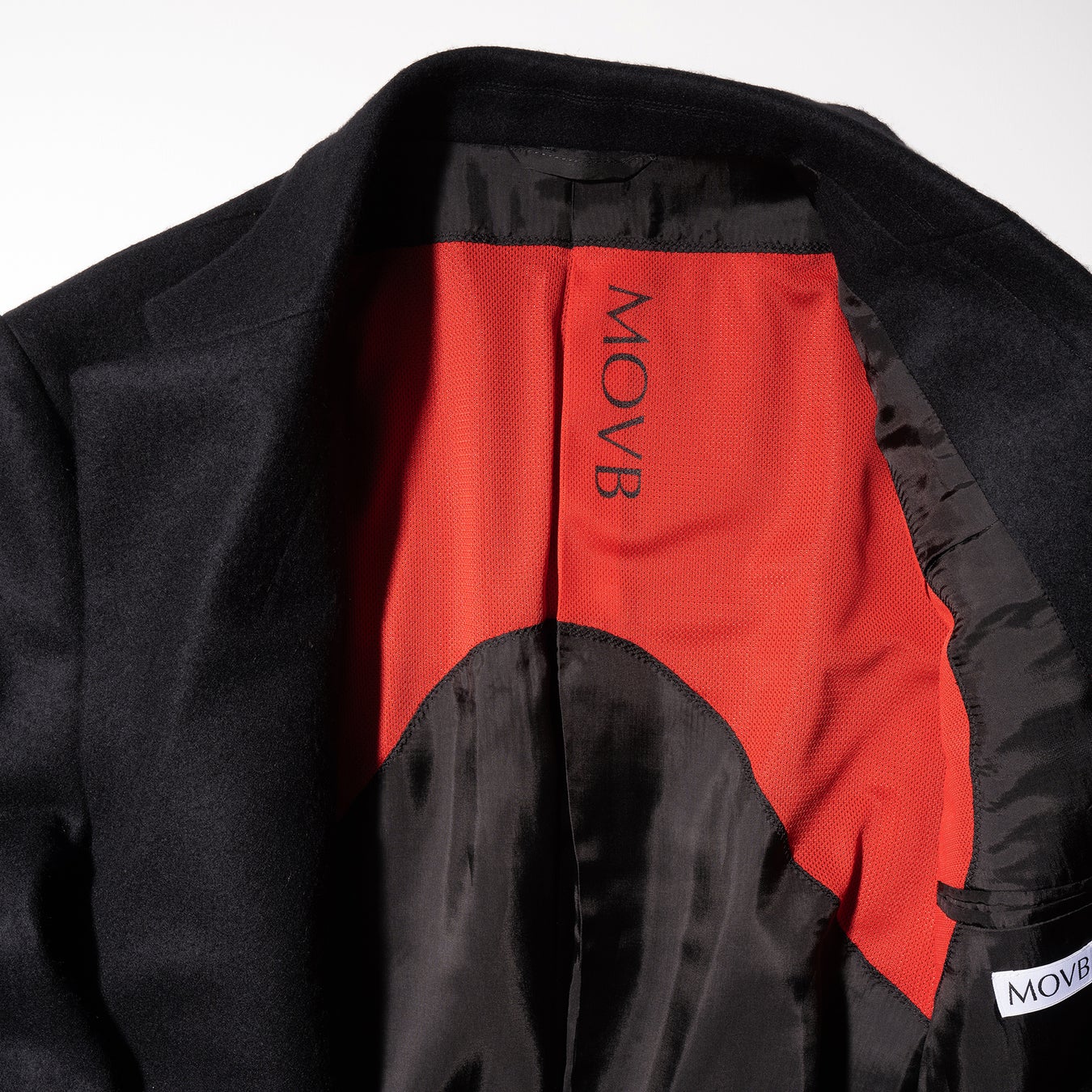 このMOVING仕様はMOVB独自機構で、MOVBのコンセプトである「想像を超える快適性」を実現するためになくてはならない仕様。MOVBのジャケットなどにも採用しており、コートでありながらストレスのないリラクシングな着心地を実現しています。