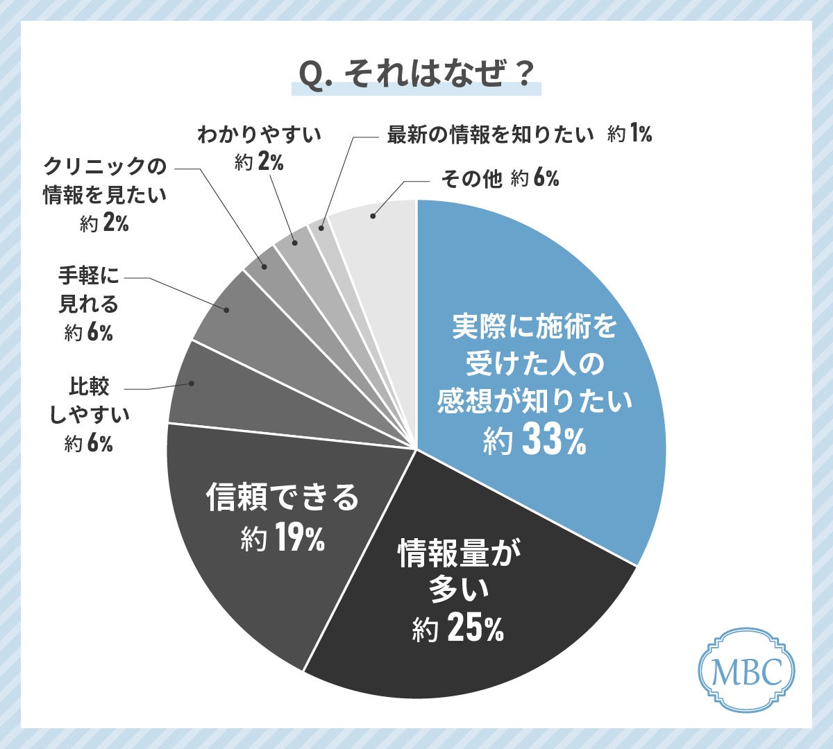 理由としては、実際に施術を受けた方の体験談・口コミの情報が多く見れることが重要のようです。