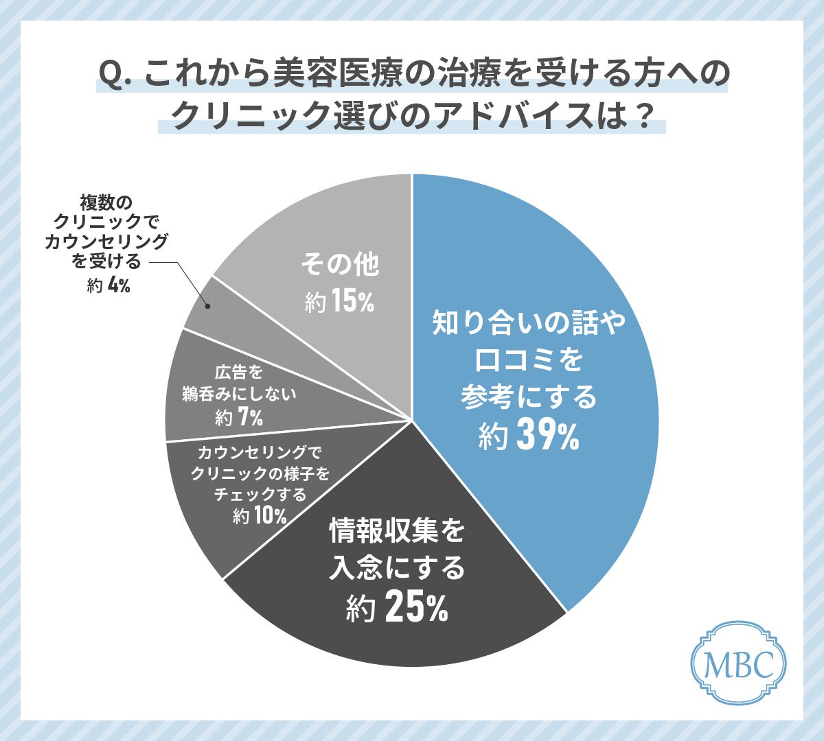 「これから美容医療の治療を受ける方へのクリニックの選び方のアドバイスをお願いします。」とアンケート調査した結果、