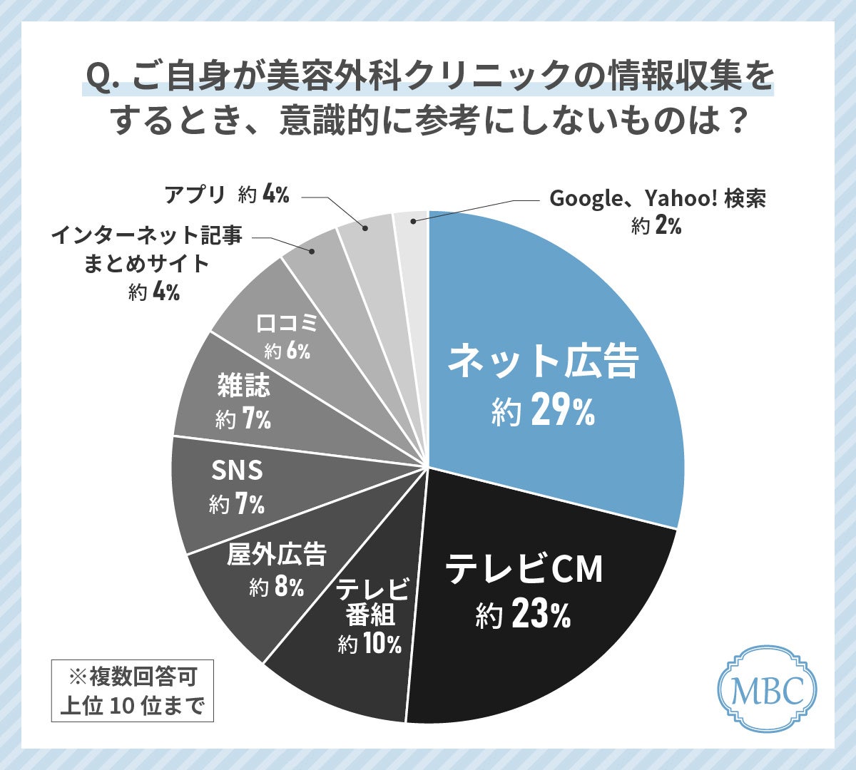 「ご自身が美容外科クリニックの情報収集をするときに意識的に参考にしないものはどれですか(複数選択可)」とアンケート調査した結果、