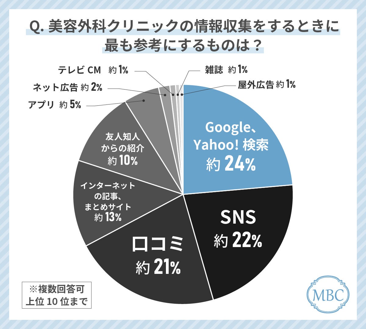 「ご自身が美容外科クリニックの情報収集をするときに最も参考にするものは何ですか(複数選択可)」とアンケート調査した結果、