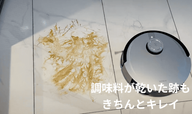 ディーボット ターボは、固まった調味料など頑固な汚れも拭き取れる三層構造のモップパッドを採用。内層でモップを強力に吸着し、中間層に水分を閉じ込め、外層で床を直接拭き取る構造で、人が実際に手で拭いているような力強い水拭きを実現しました。