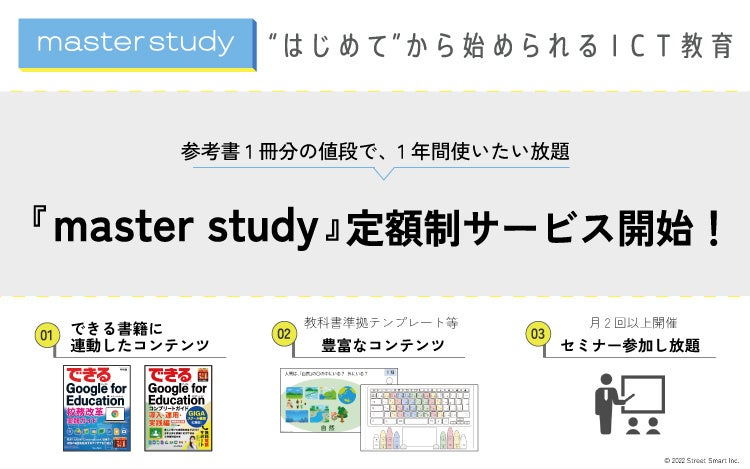 株式会社ストリートスマートは、ICT教育を支援する『master study(マスタースタディ)』の定額制サービスを、2022年6月1日より基本契約プランとしてスタートいたします。