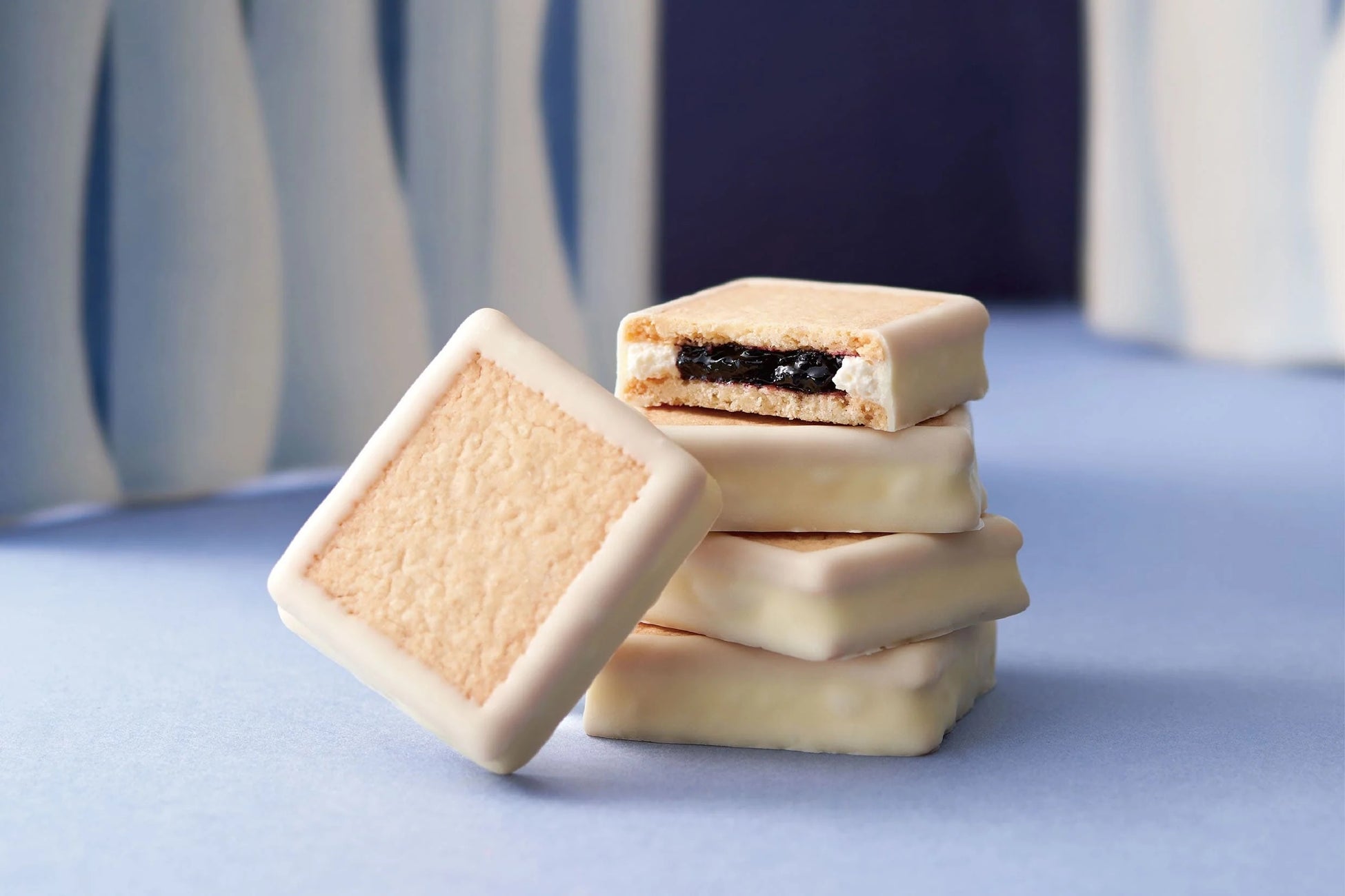 1978年(昭和53年)に誕生しました。ハスカップで作るジャムと北海道産バターで作るバタークリームを薄焼きクッキーでサンドし、クーベルチュールチョコレートで縁取りしています。職人が持てる技術のすべてを注ぎ込み生み出した、しっとり食感のケーキのようなスイーツです。