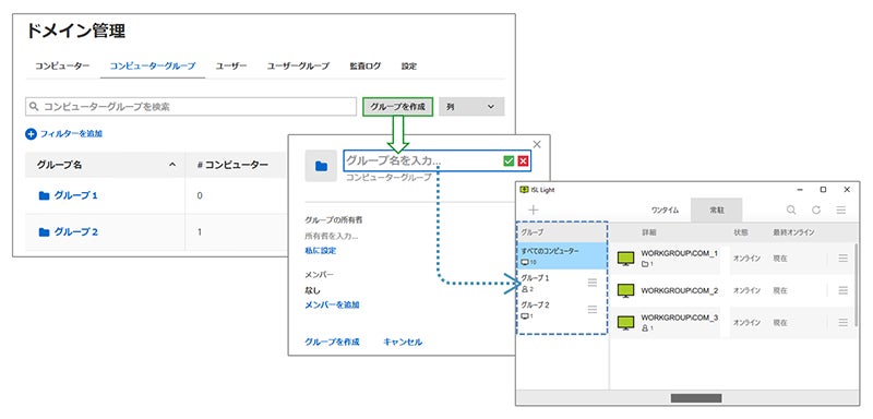 常駐接続用の端末をグループごとにまとめて管理できるようになりました。接続先を整理し、権限を分けて管理することで、アクセス権の管理が煩雑にならず、よりスムーズに運用できます。