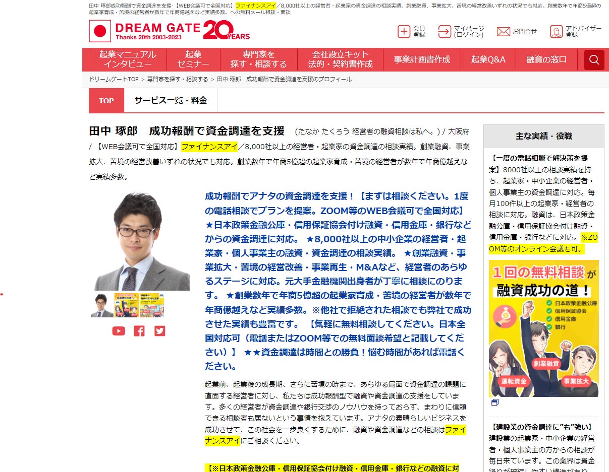 ファイナンスアイは経産省発・日本最大級の起業家・経営者支援サイト【ドリームゲート】の認定アドバイザー